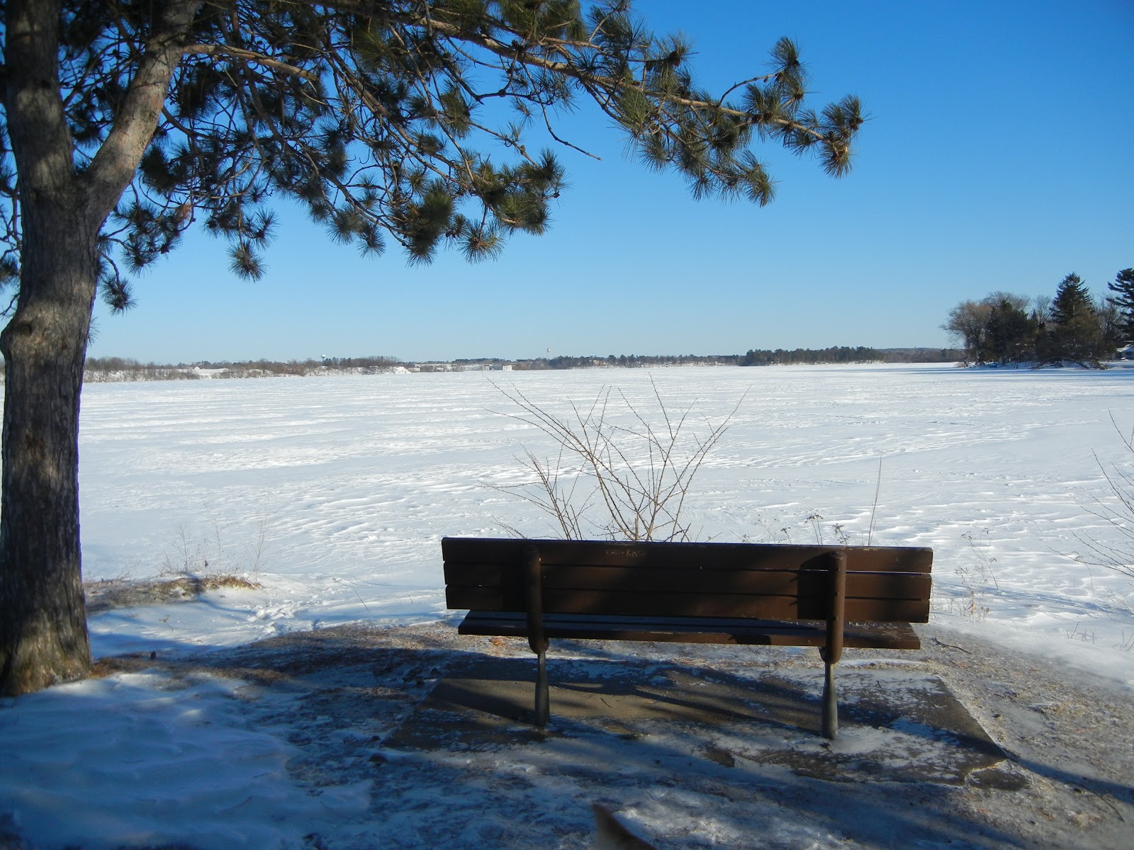 And if you keep going all the way out to the tip, there's a bench overlooking Lake Wausau, where you can sit in the sun, listening to the wind in the pine branches and the waves breaking on shore.